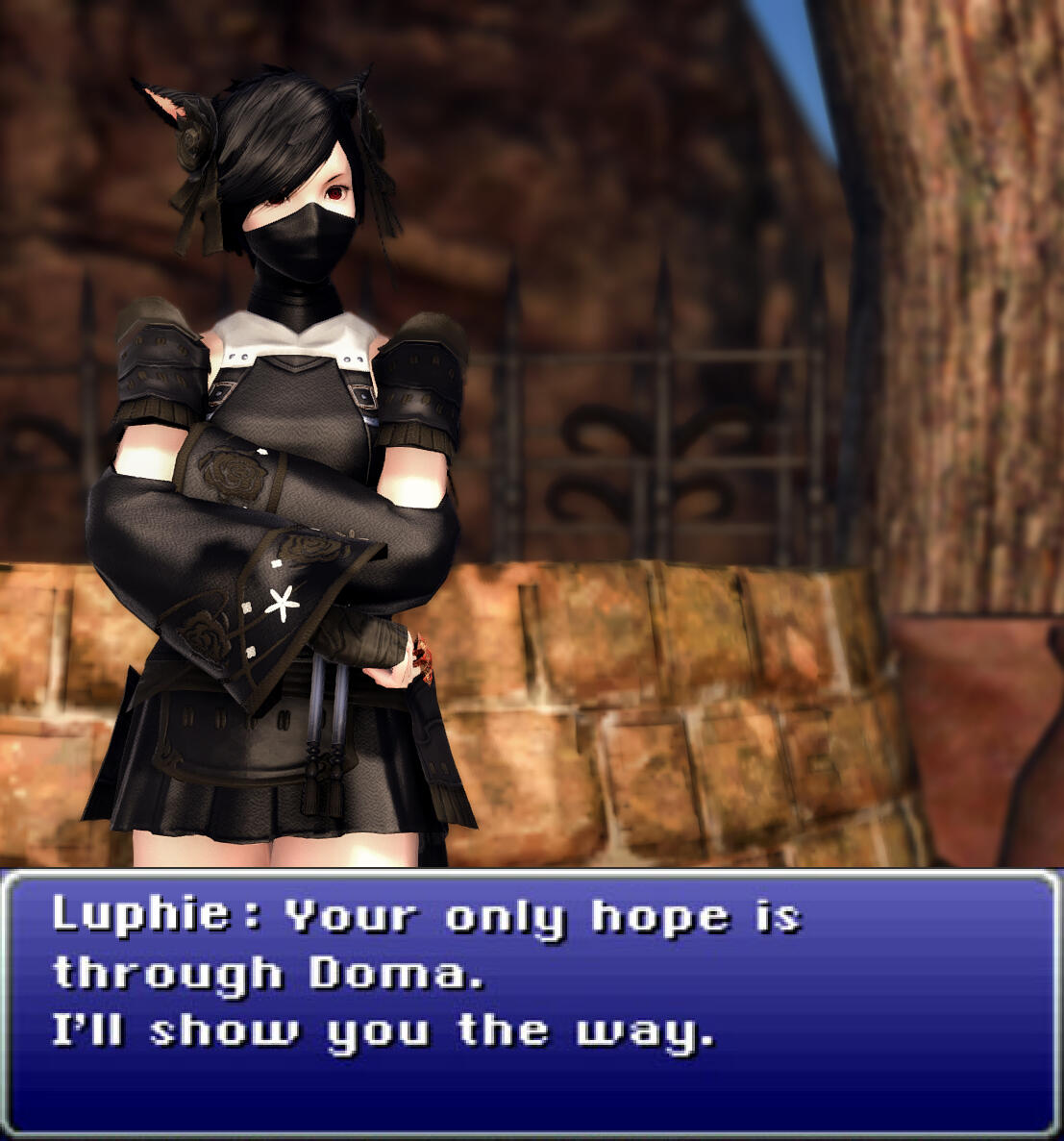 Hewo! It me! I am a mother above 30, which gives me a lot of time to RP and no time at all at the same time.I enjoy all sorts of RP, but I prefer light stuff outside of my FC. I've been playing FFXIV since 2015, RPing since 2016, although I have RP experience far before that. I can do short segments or longer adventures too! I admit that I love little fun encounters the most.I am usually available between 8PM to 11PM EST, sometimes earlier or later, and some random mornings. Oh, and I'm french! English is not my main language, so excuse me if I'm confusing at time..!Where does my inspiration come from? As a character, Luphie is heavily inspirated by Yuffie Kisaragi, as some would have already guessed. Otherwise, I have spent many many hours studying Shinobi history from Japan to understand their role and skills. After reading the translated scrolls of the Shōninki, the Bansenshukai and the Ninpiden, I see the Shinobi as a skillful information gatherer and enemy agitator linked to the Samurai, rather than the modern depiction of an assassin or thief dressed in black. I understand that there is 0 recorded history of female Shinobi warriors (other than playing roles of distractions) and such, but I do absolutely love the idea of esoteric powers and secret techniques. This is why you will see Luphie use both historically accurate techniques and stuff out of fantasy!Also my goal is to have 50 RP hooks, slowly getting there!I do not mind ERP as long as it is within context of the story, note that I am extremely faithful to my partner if/when I have one.Limits: RPing a god or some god-like creature in disguise? An Ascian? An elder dragon? Please take your roleplay elsewhere, I'm really not interested. As a personal preference, I also try to RP with people that have finished the main story or are at least going through it, to make sure we are on the same page for lore and recent events.Triggers: I cannot RP with anything concerning infantile death or abortions, those are my absolute triggers.